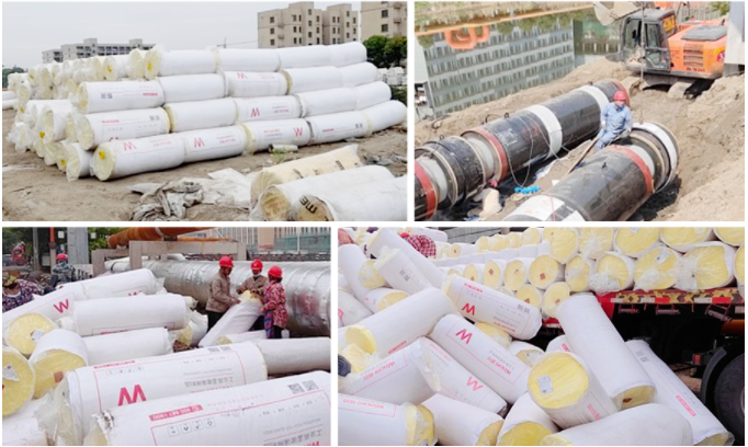 紹興濱海電廠熱網(wǎng)工程項(xiàng)目體量大,工期緊,單高溫玻璃棉用量就超過(guò)1.5萬(wàn)立方。
